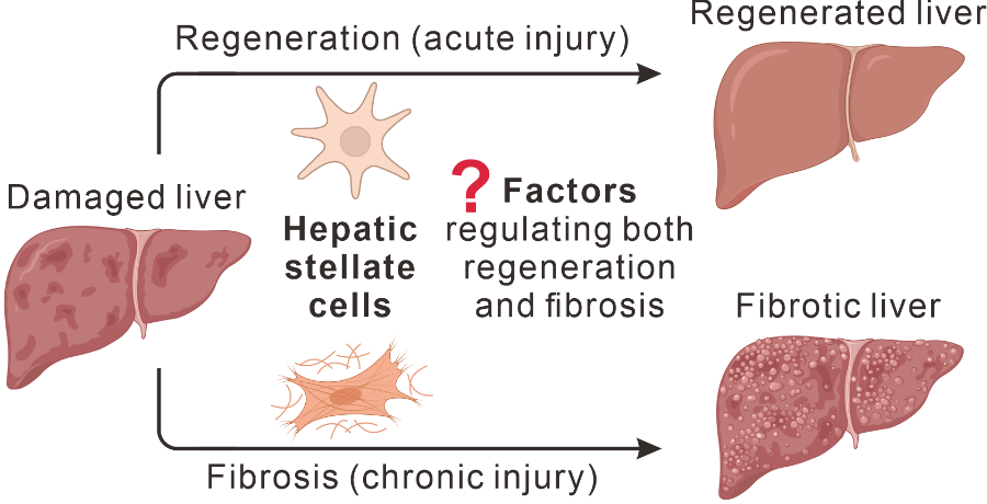 圖1?肝星狀細胞(hepatic stellate cells)在肝損傷后的再生和纖維化中發(fā)揮重要作用,但在肝星狀細胞中同時調控兩個過程的靶基因并不清楚。