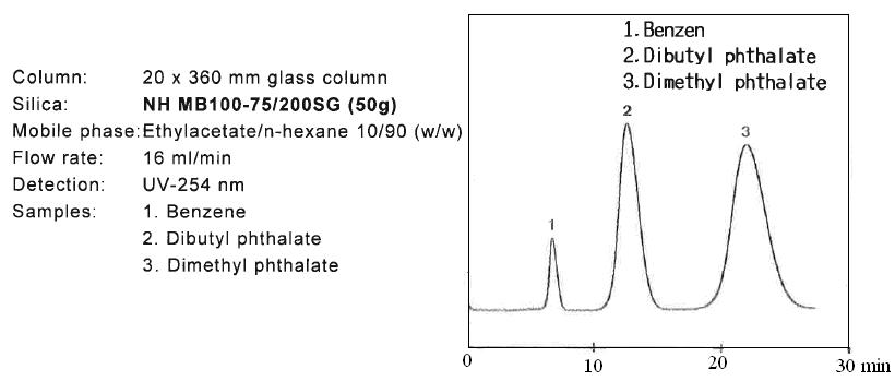在使用NH MB 100-75/200SG填料之前最好做一下預(yù)實(shí)驗(yàn)。以下是使用NH 薄層板和NH2 SPS 100-5SG做的預(yù)實(shí)驗(yàn)。