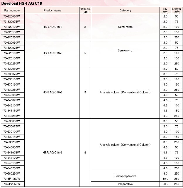 可以使保留和分離做到最大化,同時(shí)兼具耐久性和便捷性。這些特點(diǎn)可以廣泛的適用于科研研發(fā)和質(zhì)量控制。一般情況下,大極性的化合物使用HILIC模式的柱子,但是,我們可能更傾向于在分析的時(shí)候用類似的反相柱。因此,Develosil HSR AQ C18和C1柱,應(yīng)運(yùn)而生!