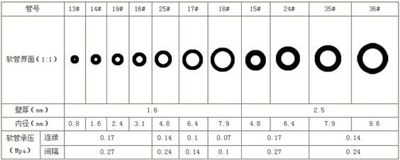 9、流量范圍:?每種軟管對(duì)應(yīng)固定的轉(zhuǎn)速范圍,我們根據(jù)客戶的需要的流量范圍選擇相應(yīng)軟管。具體數(shù)據(jù)見各種軟管流量范圍對(duì)照表: