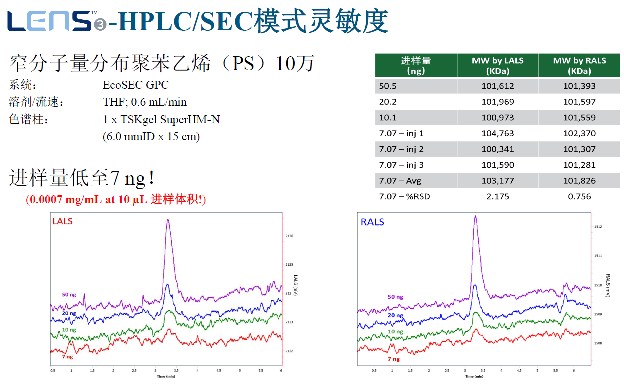 ? ? ? ?光散射是測(cè)量聚合物、蛋白質(zhì)、多肽化合物以及其他多種復(fù)雜結(jié)構(gòu)大分子的絕對(duì)分子量以及尺寸的最常用表征手段。通過(guò)與HPLC或者GPC聯(lián)用,光散射可作為表征和探索大分子的結(jié)構(gòu)、構(gòu)型和組成的利器 !
