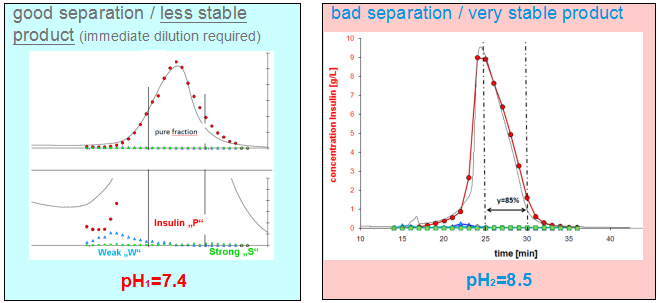 L.Aumann等采用MCSGP,在pH=8.5時將目標(biāo)產(chǎn)物與降解物的重疊部分進(jìn)行回收,不斷進(jìn)行提純,同時保證了產(chǎn)品純度和收率。