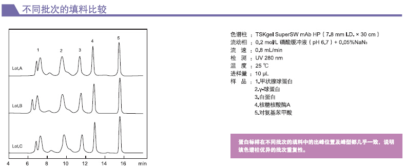1. TSKgel SuperSW柱有內(nèi)徑為4μm的顆粒,能實(shí)現(xiàn)最高分辨率。窄至4.6mm內(nèi)徑的柱能在一定量的樣品質(zhì)量范圍內(nèi)提高高靈敏度。