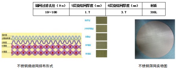上下篩網(wǎng)為多層結(jié)構(gòu)的不銹鋼燒結(jié)網(wǎng)。 與聚乙烯篩網(wǎng)不同:聚乙烯篩網(wǎng)為疏水性質(zhì),需要在裝柱前充分潤濕,而不銹鋼篩網(wǎng)則不需要提前潤濕。不銹鋼燒結(jié)網(wǎng)由保護(hù)層、過程控制層、分散層及2~3層補(bǔ)強(qiáng)層燒結(jié)而成。