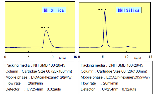 DNH硅膠使用低極性的流動相,并且有利于堿性樣品改善峰型